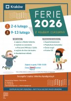 Piątek 13.02.2026 r. 09:00-13:00 Gra terenowa w Parku Solvay oraz seans filmowy w kinie Cinema City Zakopianka. 13:00-13:30 Obiad. 13:30-15:00 Podsumowanie warsztatów oraz prezentacja dokonań uczestników zimowiska.